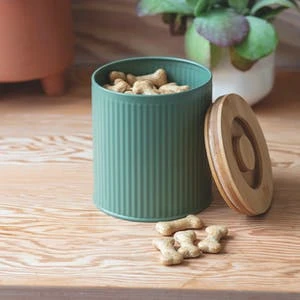 Conservez les biscuits et friandises de votre chien ou de votre chat à l’abri de la lumière, de l’humidité ou de leur gourmandise dans cette jolie boîte blanche ou vert sauge en acier signée Garden Trading.