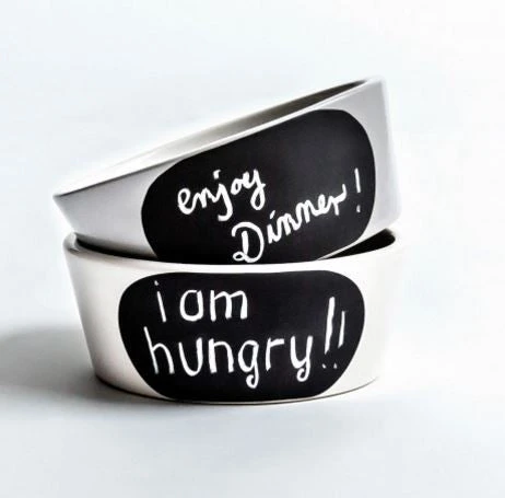 Le bol pour chien CHALK (=craie) fonctionne comme un tableau noir : on y inscrit des messages concernant le repas quotidien, par exemple, « Rosie a mangé » ou « J’ai faim »,