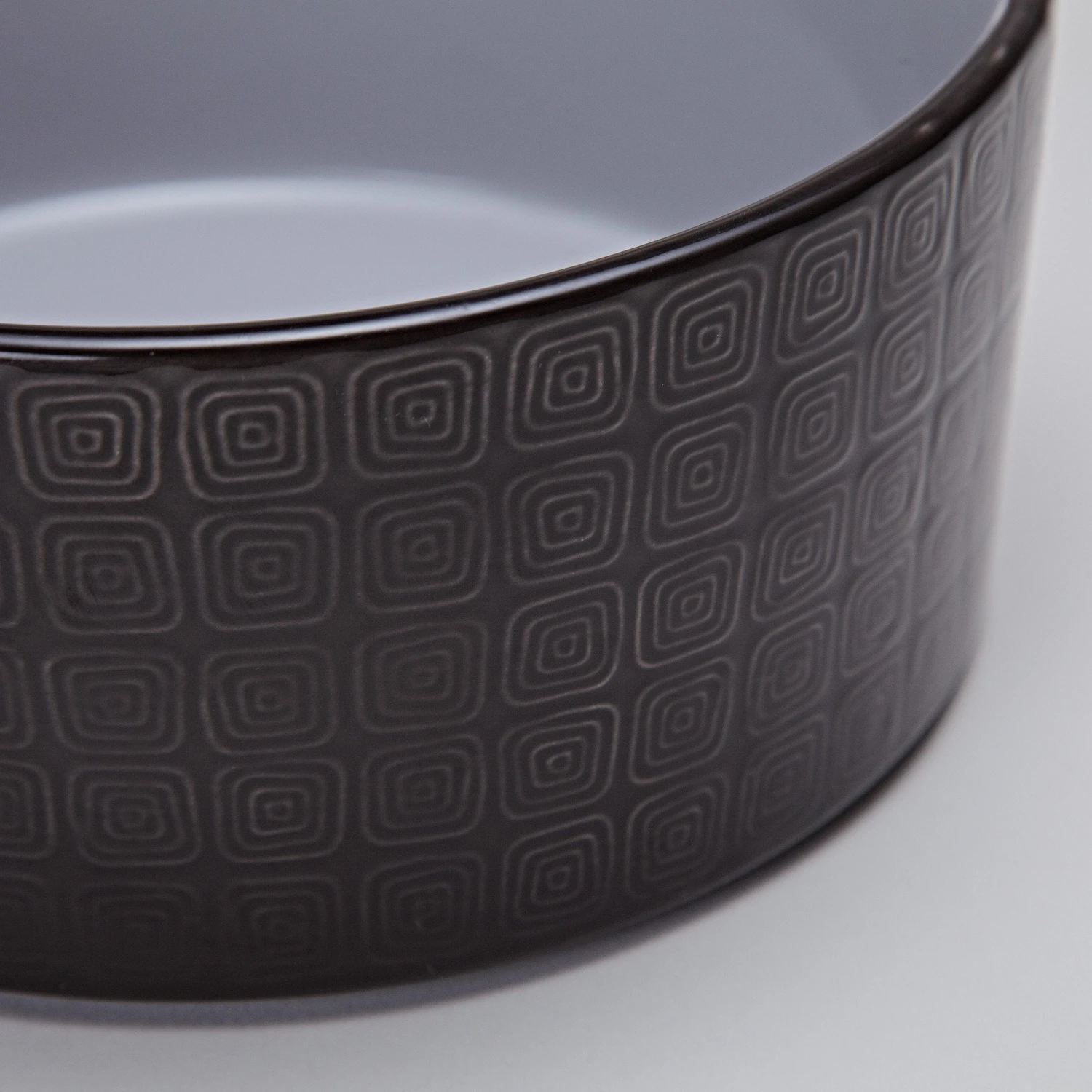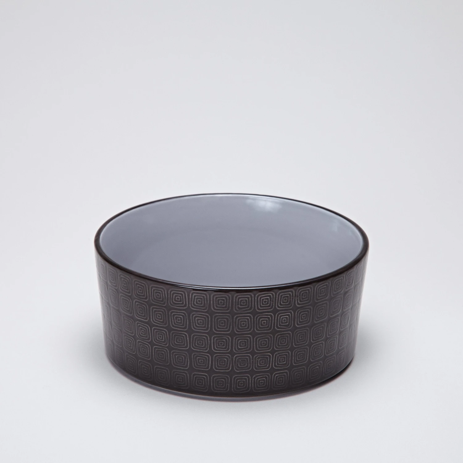 Ce bol rompt discrètement son design minimaliste avec un motif graphique gravé en surface. De couleur mocca à l’extérieur, il est gris bleuté à l’intérieur.