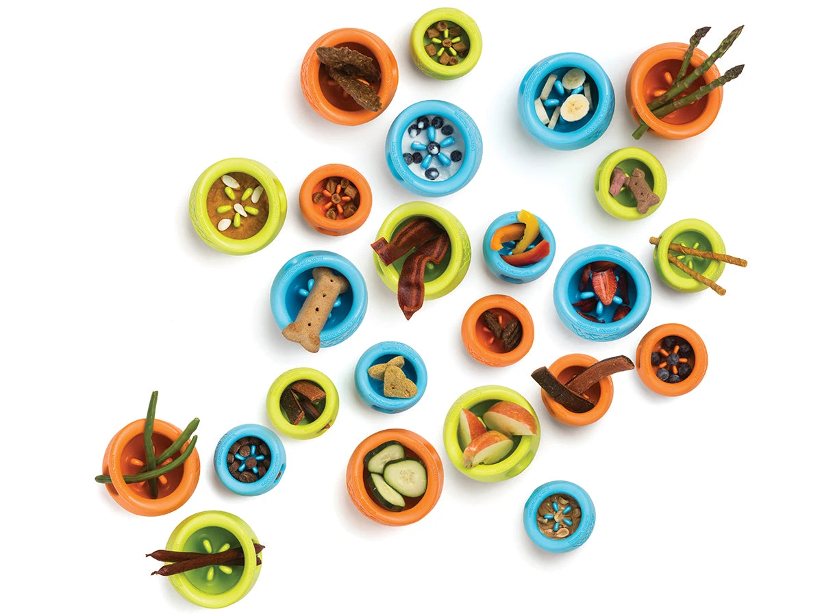 Durable et résistant, il est conçu pour être rempli de friandises ou de croquettes appréciées de votre chien. Les dents arrondies et douces situées à l’intérieur du jouet sont pensées pour maintenir la nourriture en place et faire durer le plaisir.