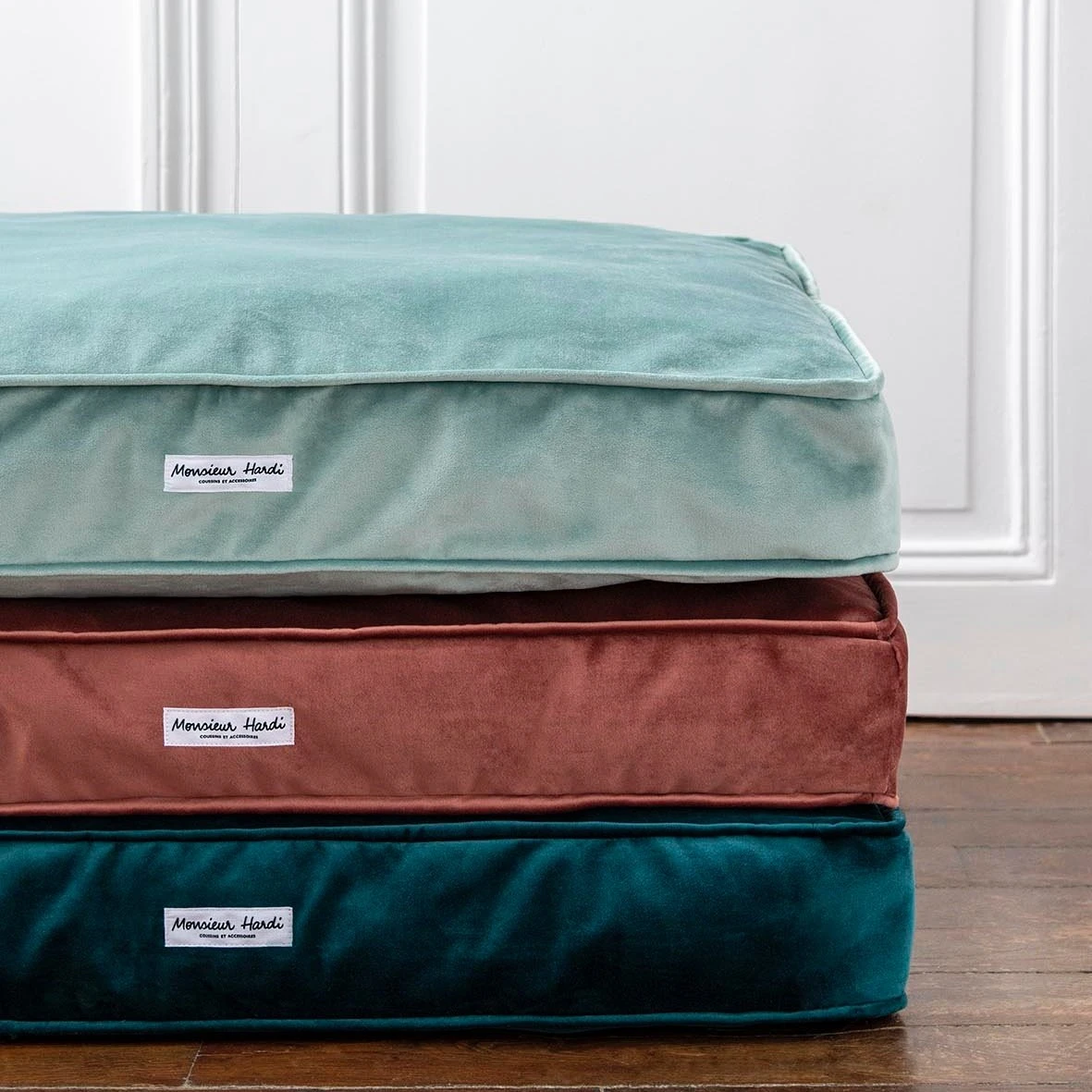 Élégance, confort et personnalisation, c’est ce qu’offrent les magnifiques coussins pour chiens made in France (!) de Monsieur Hardi.