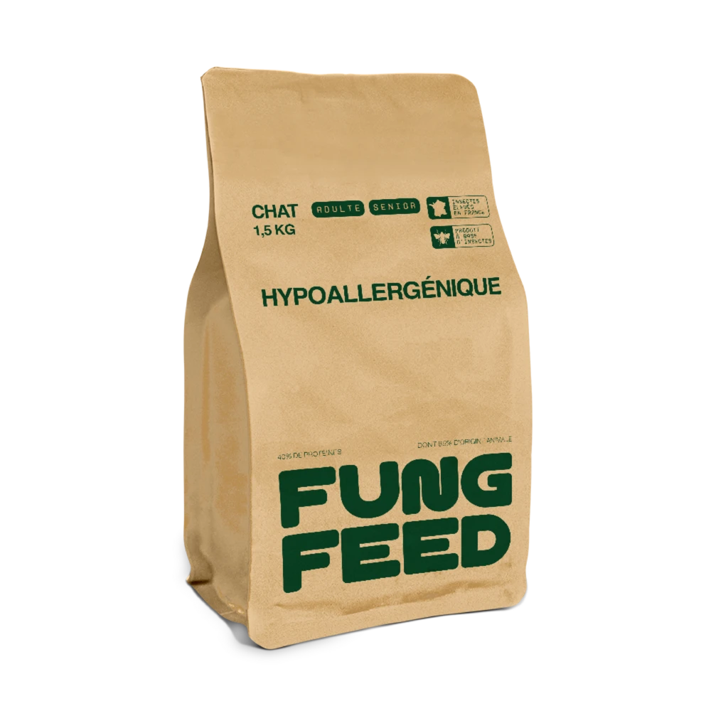 Les croquettes pour chat à base d’insectes de Fungfeed sont hypoallergéniques, écologiques et made in France. Elles conviennent aux chats de tous âges et de toutes races.