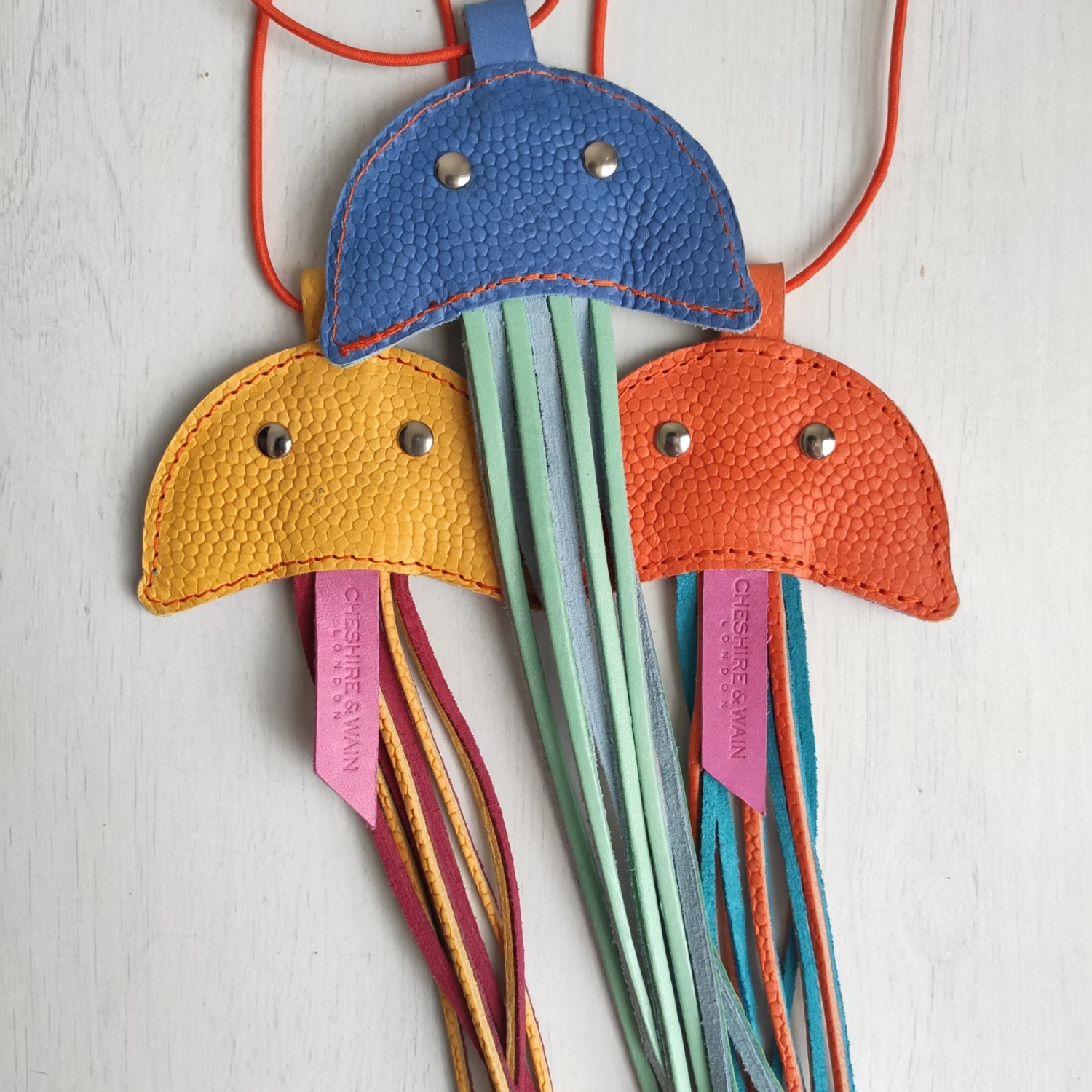 Le nouveaux jouets taquin Jellyfish est fabriqué à partir de chutes de cuir italien dans une gamme de couleurs vives avec des yeux argentés, une attache élastique de haute qualité et des tentacules pour que votre chaton puisse traquer et chasser!