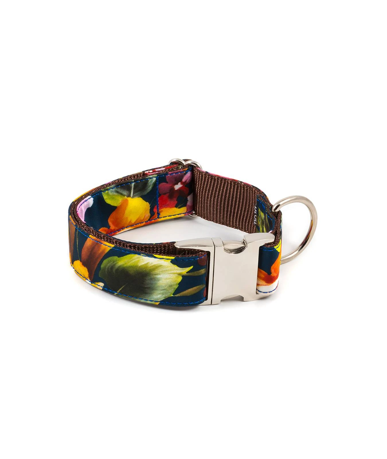 La laisse Tiana pour chien est fabriqué à partir de nylon marron de haute qualité avec un tissu au motif fleuri automnale.