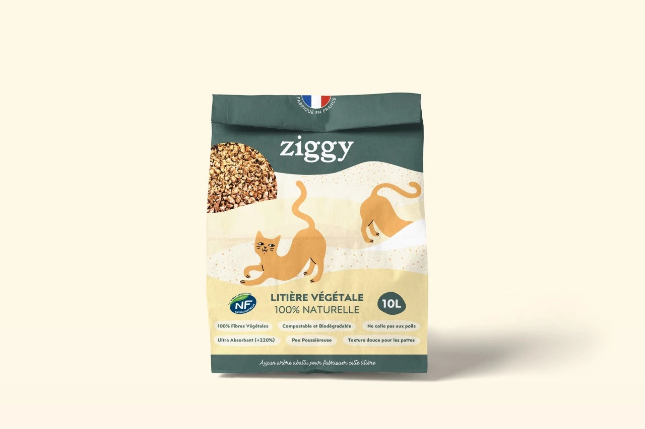 Pas avec Ziggy qui propose une litière fabriquée à Courbehaye dans l’Eure-et-Loir, au sein d’une usine familiale en activité depuis plus de 100 ans !