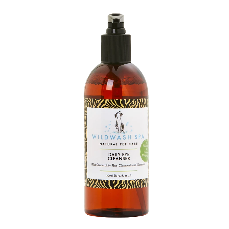 La marque britannique WildWash a créé un nettoyant oculaire pour chiens très doux à base d’aloe vera biologique reconnue pour ses propriétés nettoyantes et antibactériennes, de camomille pour nettoyer et éclaircir et de concombre pour calmer, hydrater et rafraîchir. Le soin pour les yeux Wildwash est idéal pour nettoyer les coulures colorées des chiens blancs