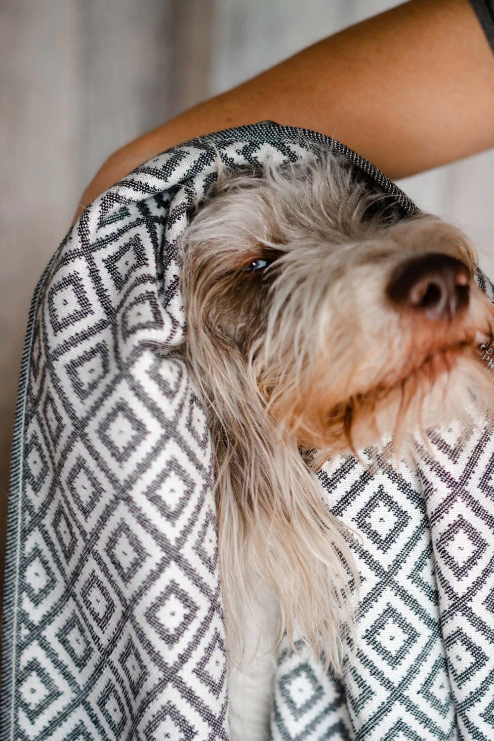 La serviette Linaa de la marque Labbvenn permet de sécher votre chien rapidement avec une touche de délicatesse et de douceur